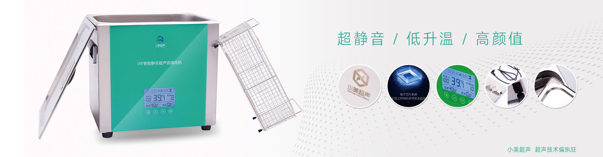 昆山小美超聲-集研發(fā)和生產(chǎn)為一體的超聲波清洗機(jī)、破碎儀、超聲波點(diǎn)焊機(jī)廠家,我們面向全國(guó)供應(yīng):小型超聲波清洗器(實(shí)驗(yàn)室/醫(yī)用清洗機(jī)專(zhuān)用)、全自動(dòng)超聲波清洗設(shè)備。可用于清洗各種電子主板、噴頭、汽車(chē)零件、五金、玻璃鏡片、電鍍、模具、精密電路板、蔬菜水果、龍蝦等物件,清洗效果佳,噪音小。根據(jù)客戶(hù)需求不同,我們提供各種個(gè)性化定制服務(wù),可定制批發(fā)各類(lèi)單槽、雙槽、多槽、加熱|過(guò)濾系統(tǒng)、機(jī)械式清洗機(jī)。小美清洗機(jī)分為智能靜音、高頻率、低頻率、高功率以及可調(diào)功率系列等,客戶(hù)可根據(jù)自己需求來(lái)自由選擇。[查看詳細(xì)]